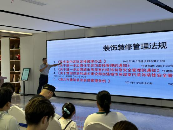 会上,专家针对广大业主在装饰装修过程中经常遇到的房屋安全问题、公众关注的权益保护知识及家装过程中的有关注意事项等进行了全面宣讲。 重点讲解了建筑装饰装修条例等法律法规、家装基本知识、家装避坑指南及现代室内设计理念等内容,提前为广大业主做出了正确的引导,防范装修过程中破坏承重结构等违法违规行为的发生,赢得了广大业主们的赞同。