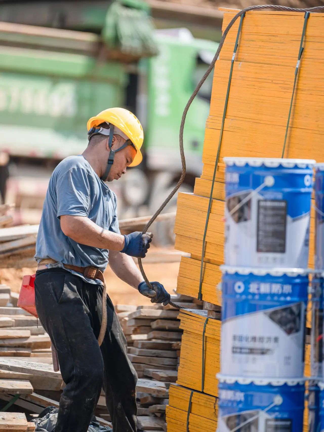 据悉,烈日暴晒下的钢筋表面十分烫手,温度能达到80~90℃。施工人员工作时都戴着厚厚的手套,穿着长衣长裤,被汗水反复浸透的衣服贴在身上,他们也早已习以为常。“我们的衣服就没干过。”一名施工工人说道,“现在这段时间温度很高,我们工作也确实辛苦,但我们还是想早些完工。”他补充说道。