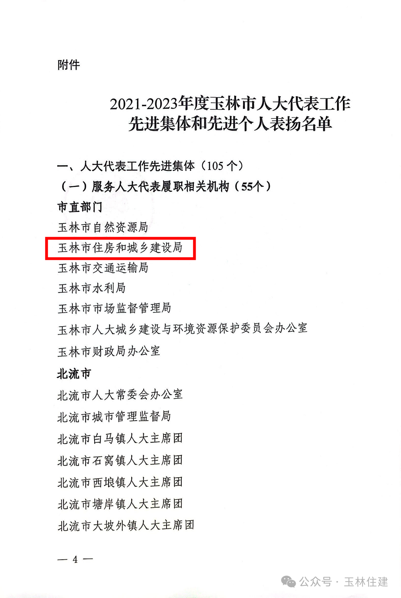 喜讯!玉林市住建局获评为2021-2023年度玉林市人大代表工作先进集体