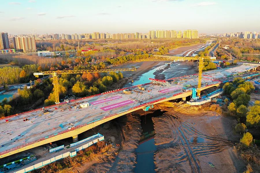 11月28日,松桂大街徒骇河桥项目建设现场机器轰鸣,施工人员正抢抓有利时机施工。11月29日凌晨2点,该桥梁最终合龙。