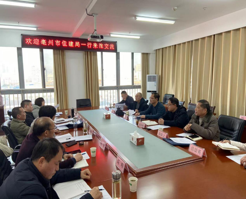 12月11日下午,亳州市住房和城乡建设局建管中心副主任方勇一行来淮交流房地产开发项目“四项成本”测算工作先进经验。市建筑工程管理处副处长苏祥彬主持召开工作交流座谈会。市税务局及参与测算工作的专家参加会议并做了交流发言。