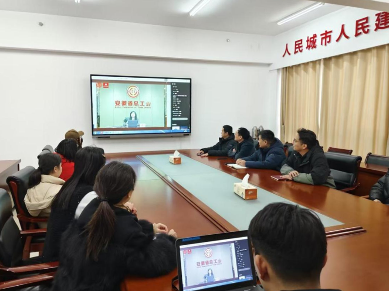 3月3日上午,安徽省总工会女职工普法宣传月活动启动仪式暨“皖工之约”女职工普法“云课堂”正式开课,市重点处组织干部职工20余人在三楼会议室集中观看学习,处女职工积极响应,参加学习。