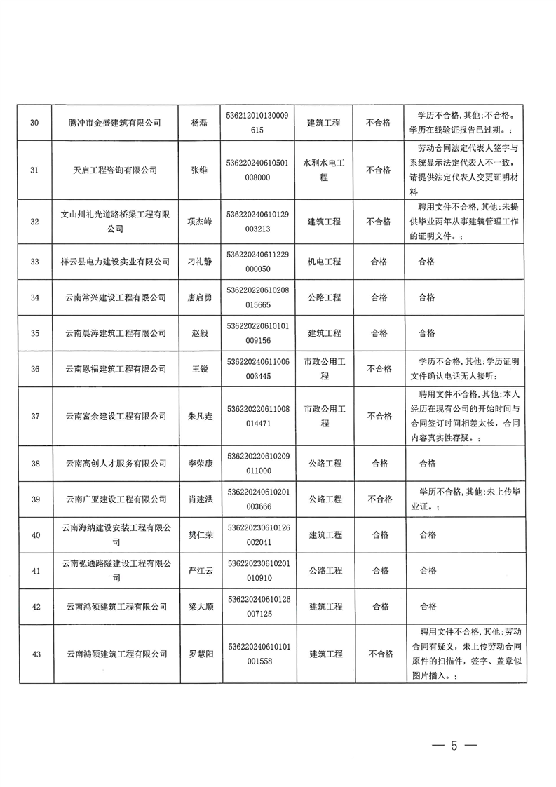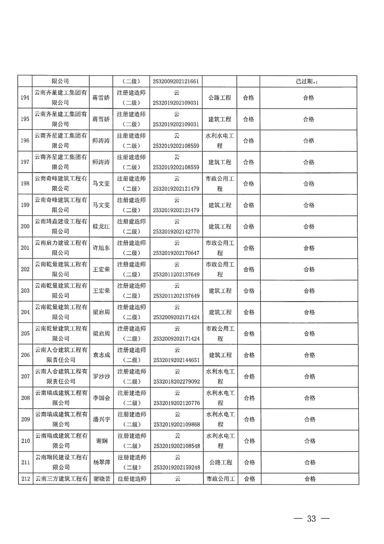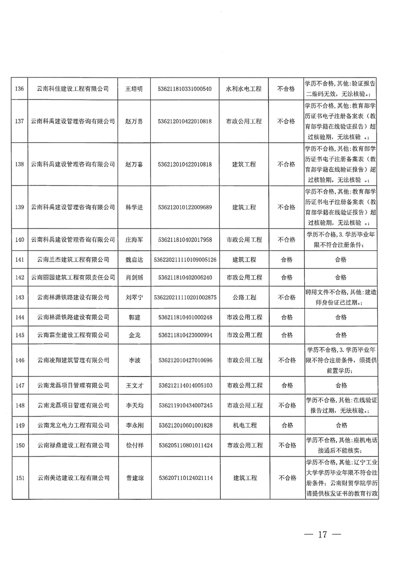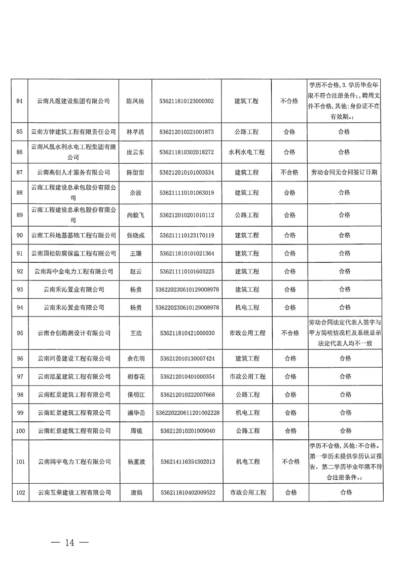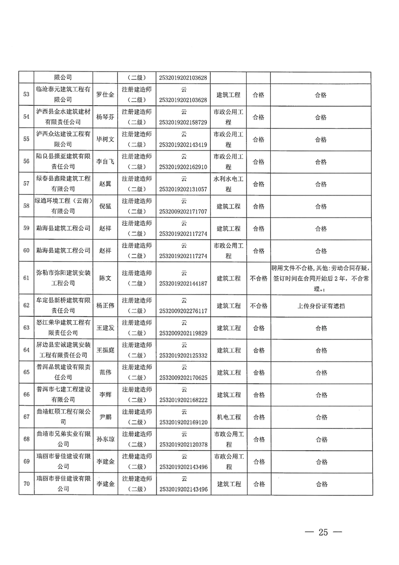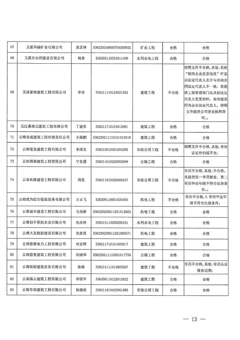 云南省住建厅关于云南省2025年第13批二级建造师初始注册重新注册延续注册增项注册人员专家审查意见的公示