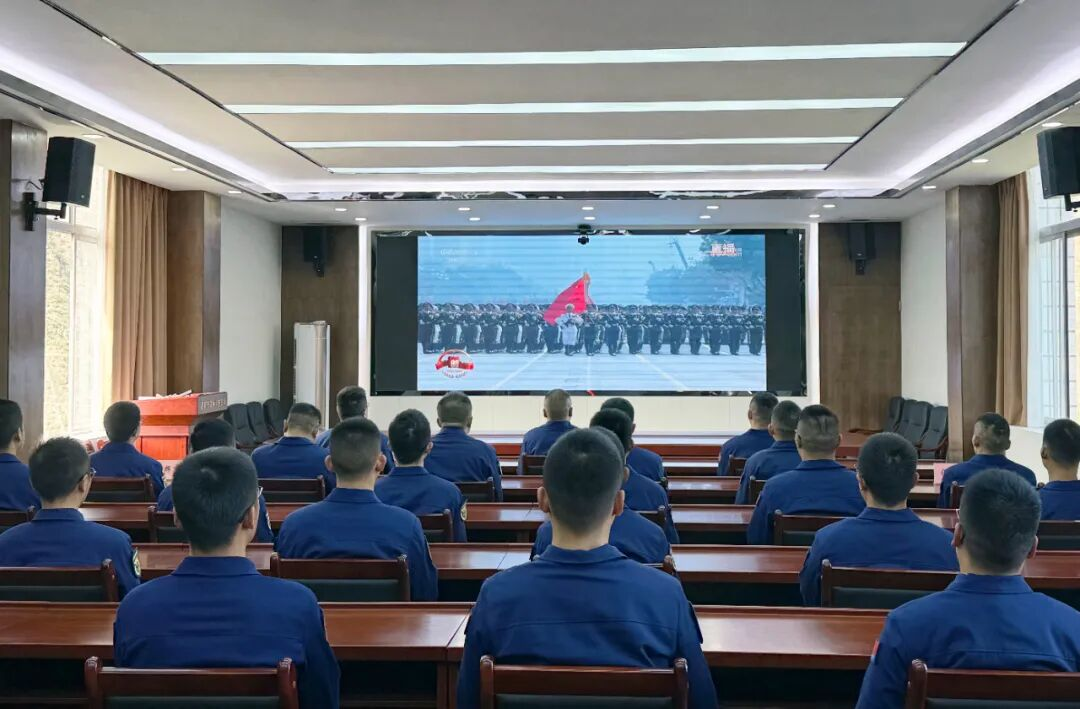 在市公安局会议室,民警们统一着装、精神抖擞,目光中写满坚毅与自信。国产主战装备的亮相、将士铿锵的步伐,让每一名民警都深感振奋。民警康珠表示:“本次阅兵展现出人民军队的强大实力和昂扬斗志,彰显我国国防科技的飞速发展。我们不仅是历史的缅怀者,更是和平的守护人。作为青年民警,我将传承抗战精神,牢记使命、恪尽职守,为民族复兴贡献力量。”