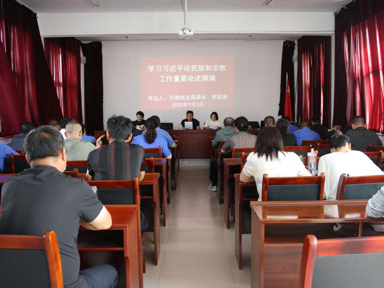 为深入贯彻落实党的民族和宗教工作方针政策,9月3日,磴口县城市管理综合行政执法局组织全体干部学习习近平总书记关于民族和宗教工作重要论述。