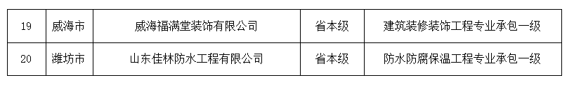 山东省住房和城乡建设厅关于核准建筑业企业资质(含部下放)名单的公告