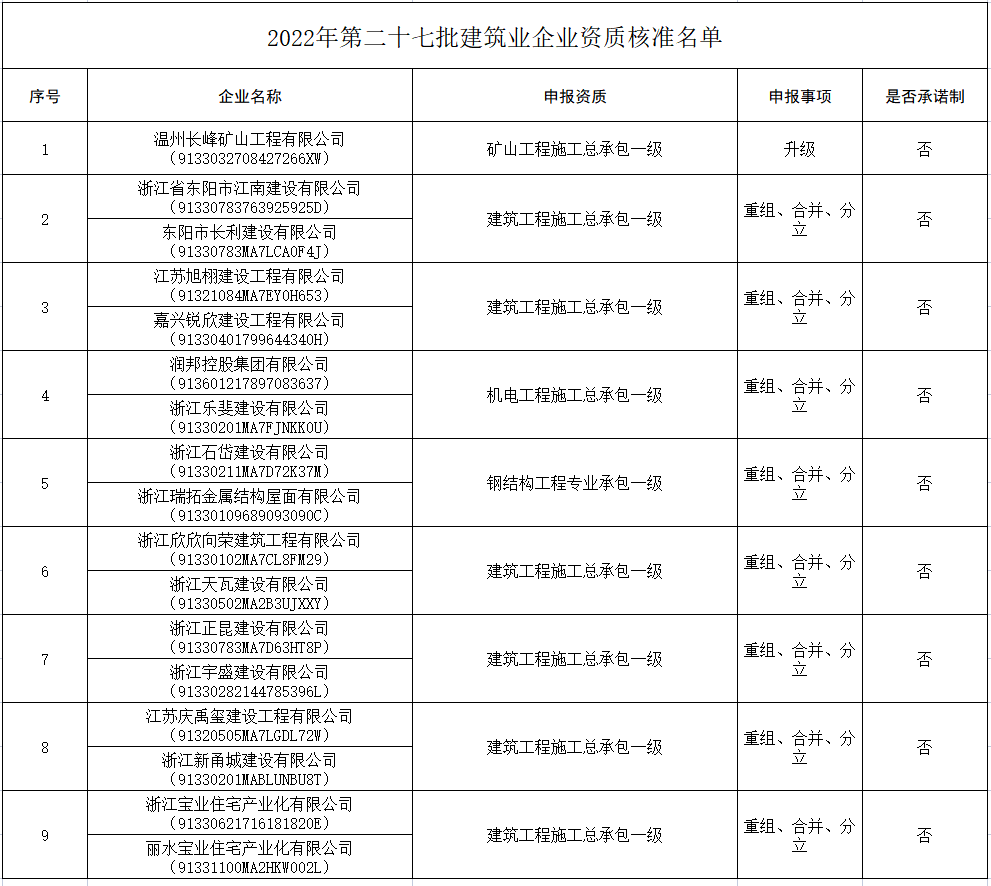 根据《中华人民共和国建筑法》及有关建设工程企业资质管理规定和《住房和城乡建设部办公厅关于开展建设工程企业资质审批权限下放试点的通知》(建办市函〔2020〕654号),现将2022年度第二十七批建设工程企业资质(住房和城乡建设部审批权限下放试点资质)核准名单予以公布。