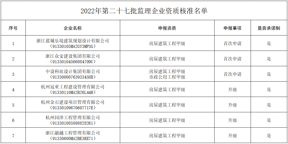 浙江省住建厅关于住房和城乡建设部审批权限下放试点资质核准名单的公告