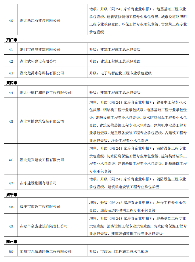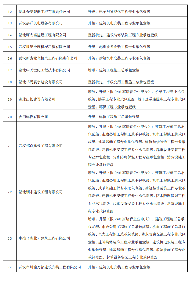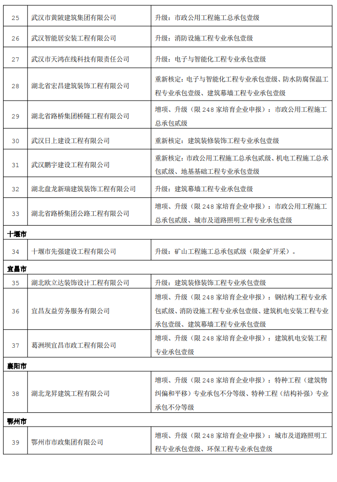 湖北省住建厅关于公布核准的建筑业企业资质名单的公告