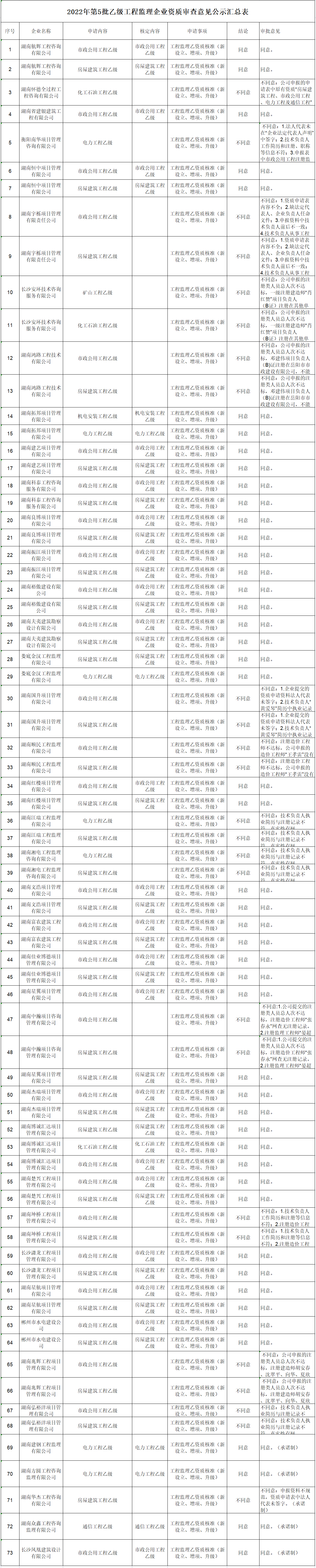 附件:2022年第5批乙级工程监理企业资质审查意见公示汇总表