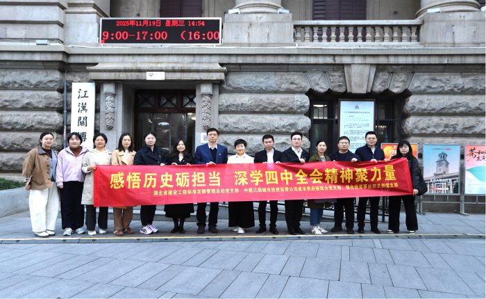 为深入学习贯彻党的二十届四中全会精神,进一步增强党组织的凝聚力和战斗力,11月19日,省标定总站党支部联合中建三局城市投资运营有限公司成本供应链联合党支部、综合投资事业部总部党支部,赴武汉江汉关博物馆,共同开展了“感悟历史砺担当 深学四中全会精神聚力量”主题党日活动,通过沉浸式参观红色教育基地,赓续红色血脉、传承红色基因。