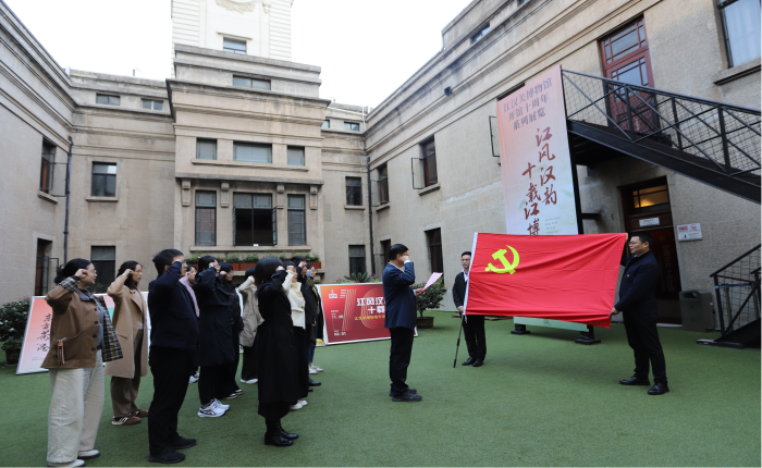 活动在庄严肃穆的氛围中拉开帷幕,全体党员整齐列队,面向鲜红党旗,重温入党誓词,进一步坚定了理想信念和初心使命。随后,大家在讲解员的引导下参观了江汉关博物馆,通过了解珍贵的历史文物、图片和影像资料,深刻感受武汉近代历史的变迁与发展,汲取奋进力量。