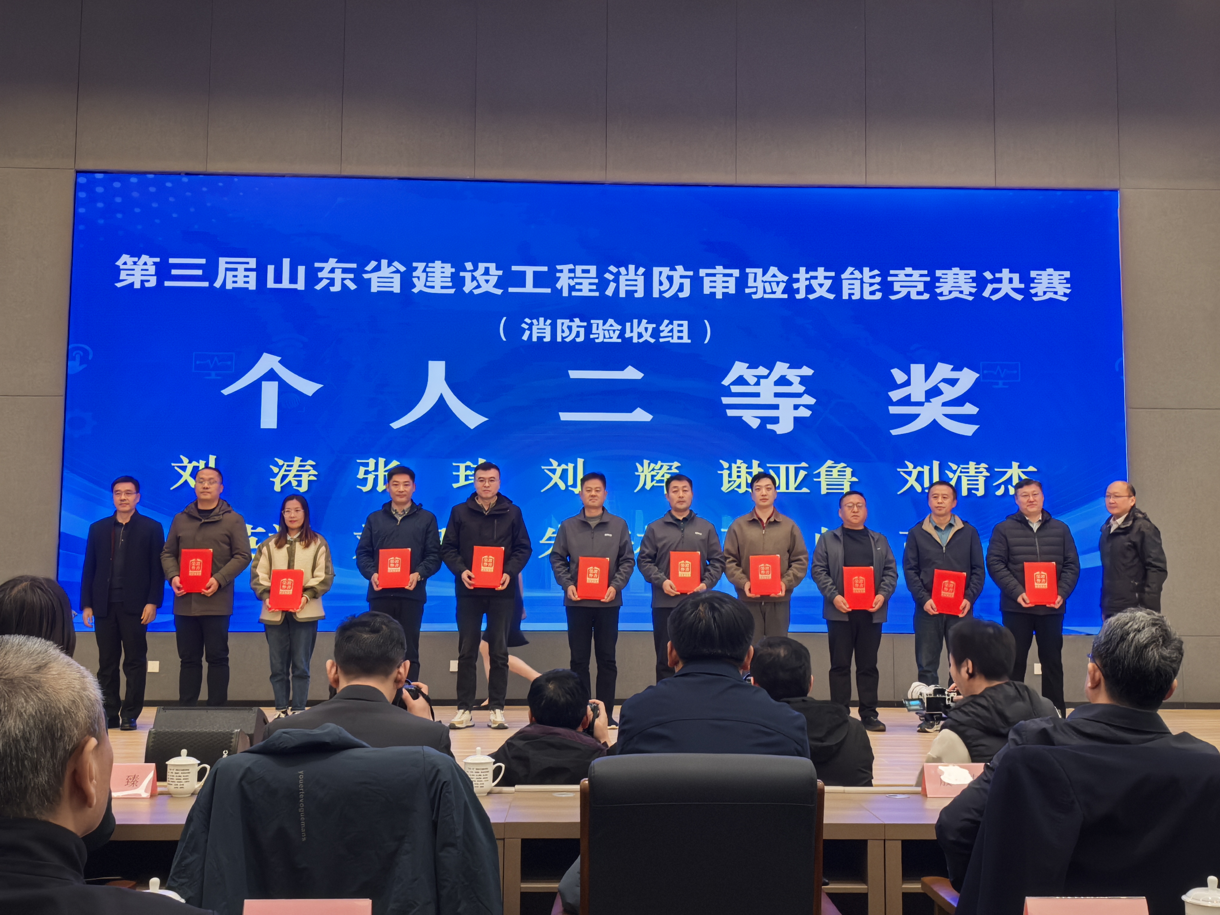 第三届山东省建设工程消防设计审查验收技能竞赛于11月26日至28日在青岛举行。聊城市代表队凭借扎实的专业功底和出色的实操能力,荣获团体三等奖,并在个人赛中收获颇丰,共夺得个人二等奖4名、三等奖1名、优秀选手奖5名。