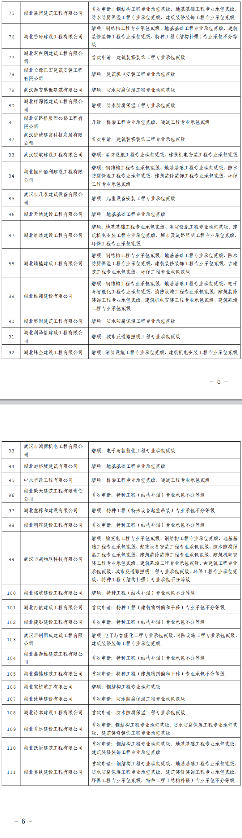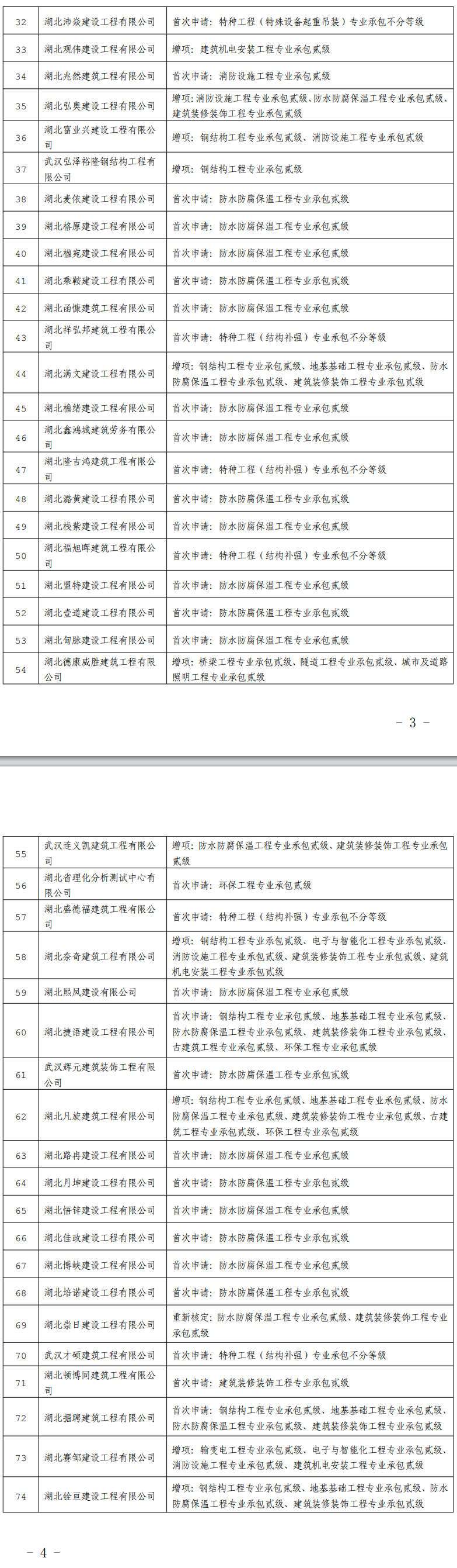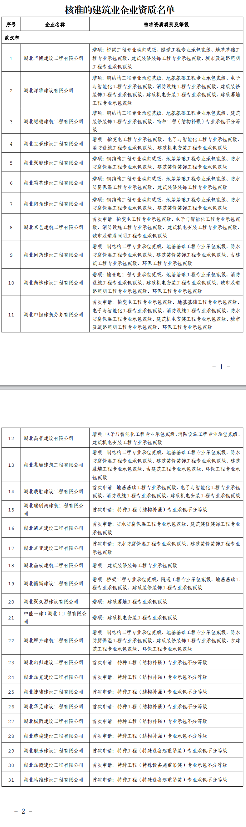 湖北省住房和城乡建设厅关于公布核准的建筑业企业资质名单的公告