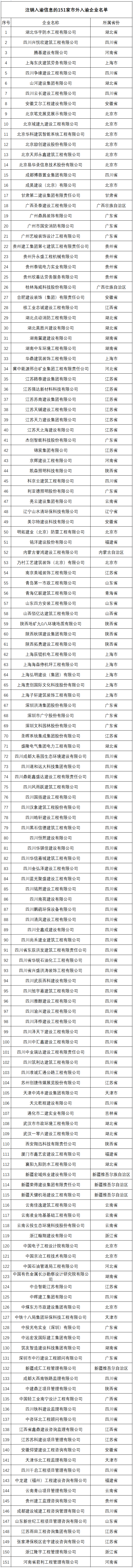 重庆市住房和城乡建设委员会关于注销2022年度“双随机、一公开”检查中逾期整改不合格的151家市外入渝企业入渝信息的公告
